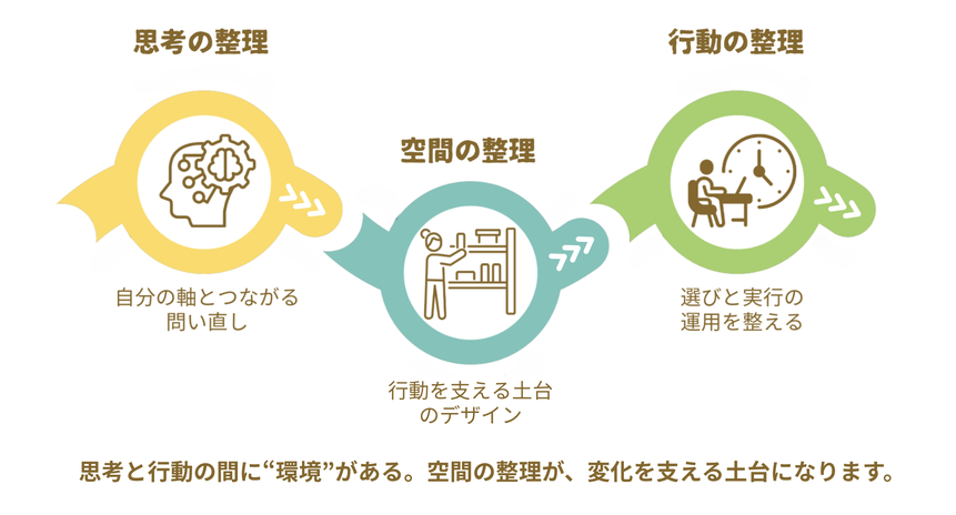 思考・空間・行動の3つを、じっくりと見つめ直し、丁寧に整えていく営みのこと。